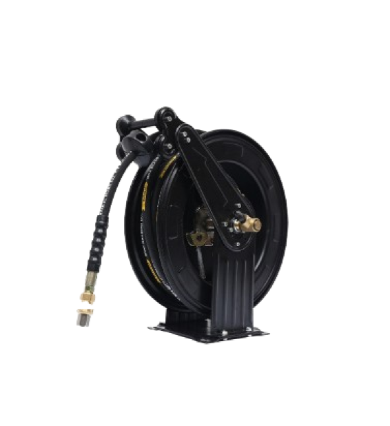 Cuộn dây nước áp lực cao tự thu dùng cho máy rửa xe có thể được lắp treo trên trần hoặc tường xưởng, hoặc trực tiếp trên máy rửa xe cao áp.
