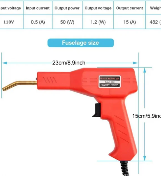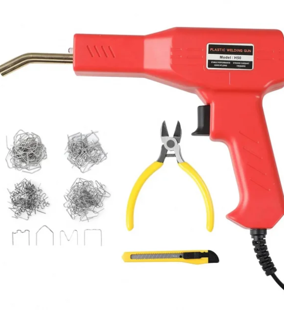 Máy ghim hàn nhựa là thiết bị máy hàn nóng bằng xung điện áp thấp hỗ trợ sửa chữa các chi tiết nhựa trên xe ô tô, xe máy hoặc các vật dụng bằng nhựa khác bị gãy vỡ. Ngoài ra bạn cũng có thể dùng mỏ hàn này để nối các miếng nhựa hoặc là phẳng mặt nhựa, ứng dụng cho nhiều mục đích thi công nhựa khác nhau.